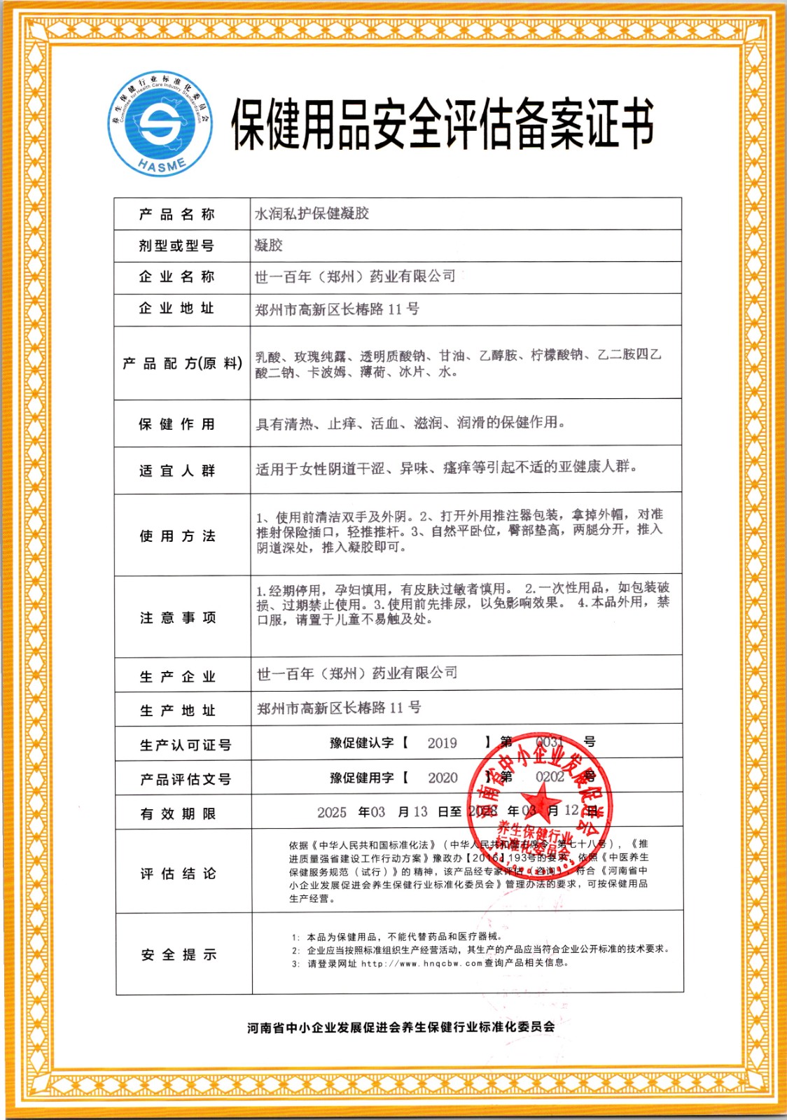 | 查看文本 | 水润私护保健凝胶l.pdf | 保健用品安全评估(咨询)意见: | 水润私护保健凝胶.jpg |