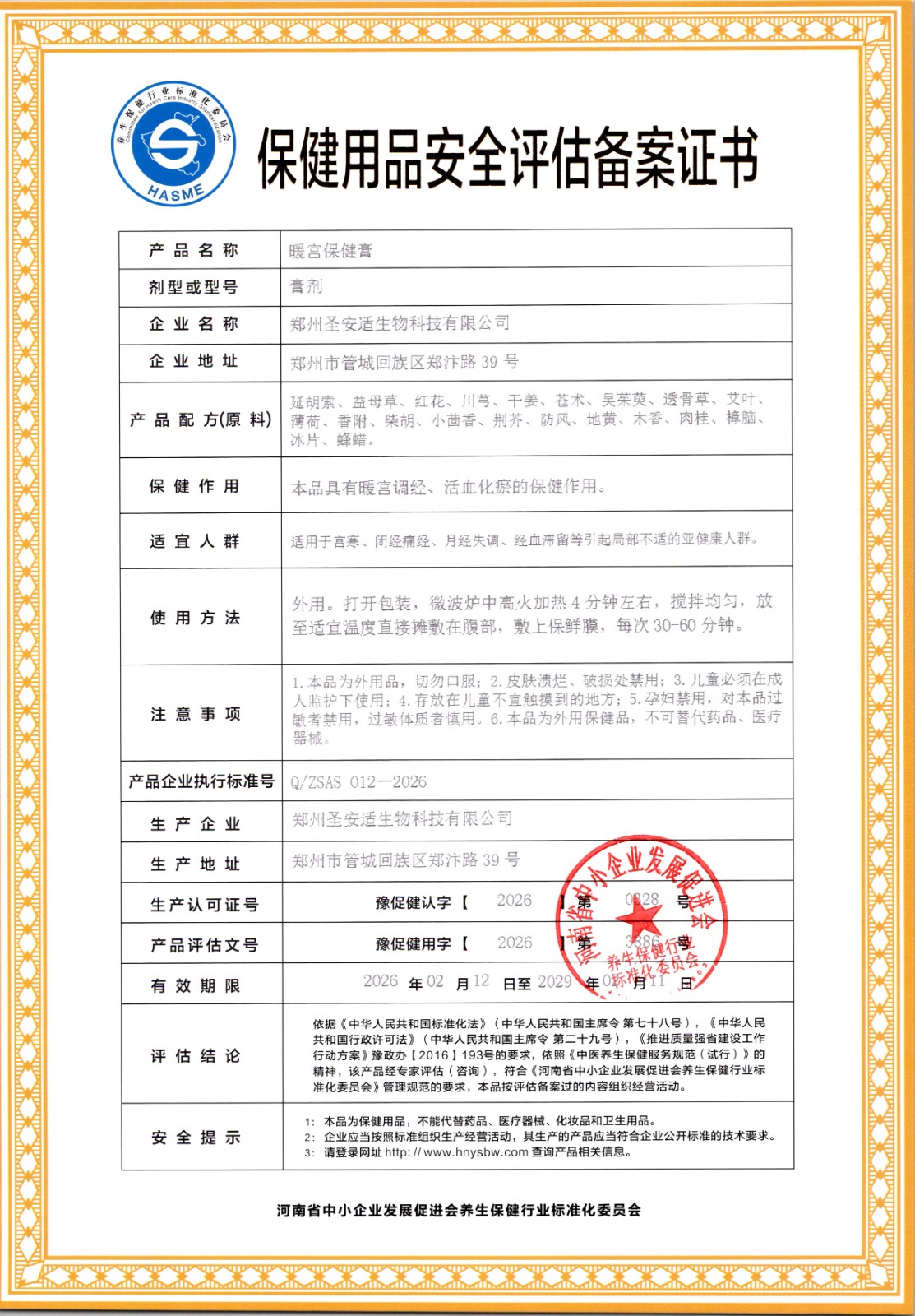 | 查看文本 | 暖宫保健膏企标111.pdf | 保健用品安全评估(咨询)意见: | 暖宫保健膏.jpg |