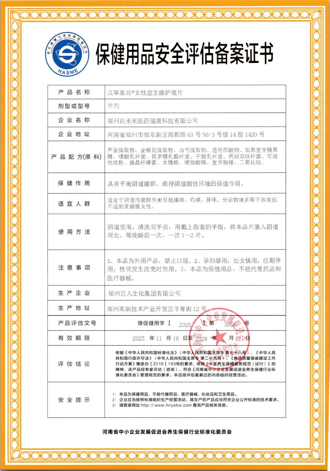 | 查看文本 | 标-001-向未来-汉草皇后®女性益生菌护理片.pdf | 保健用品安全评估(咨询)意见: | 汉草皇后®女性益生菌护理片.jpg |