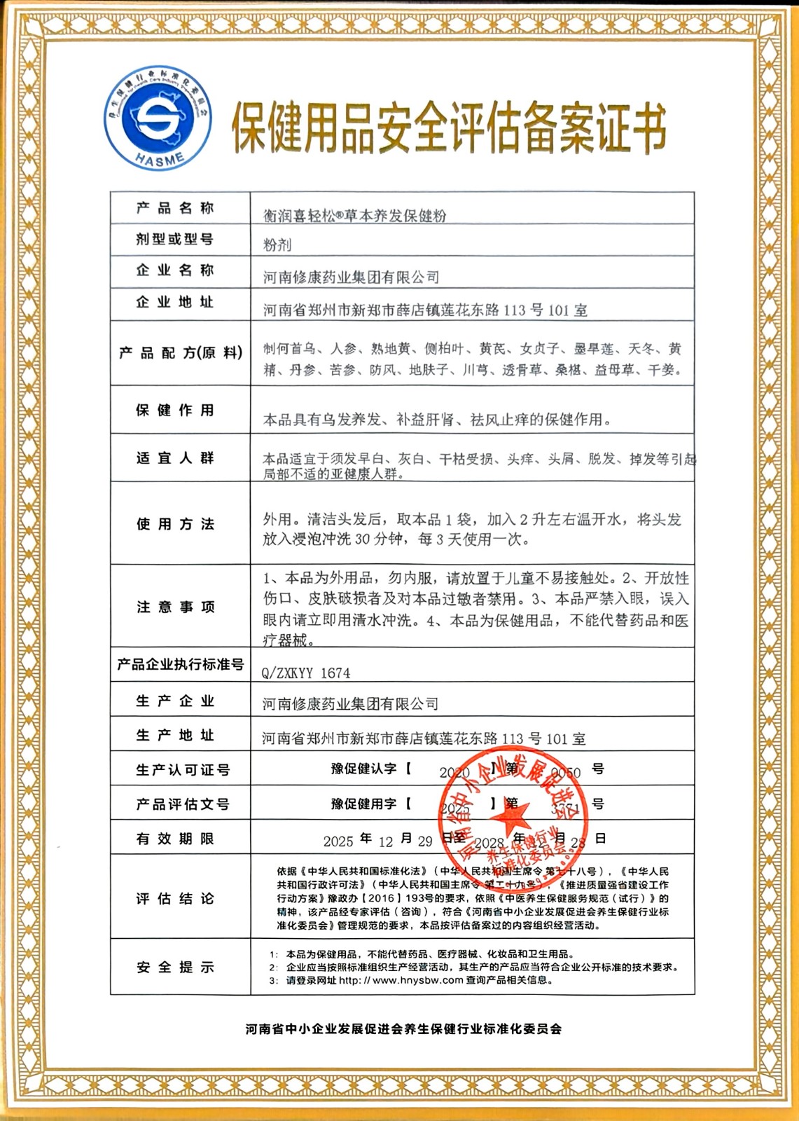 | 衡润喜轻松®草本养发保健粉 | 衡润喜轻松®草本养发保健粉 | 粉剂 |
